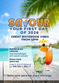 From 12:00pm, enjoy shared plates designed for lingering, and curated cocktails with a twist, including our limited "Hydrate as You Celebrate" selection featuring a Hydralyte with select cocktails.